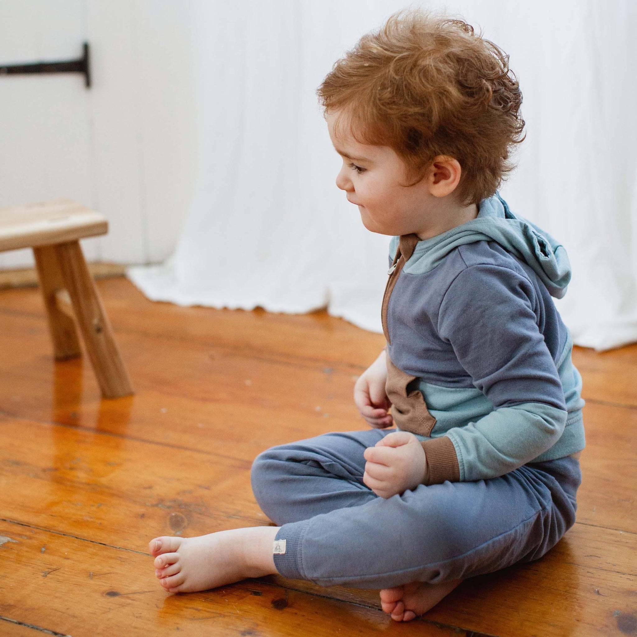 Dress your toddler in effortless style with this color-blocked sweatshirt and jogger ensemble. Crafted from 100% organic cotton French terry, the set features a distinctive color-blocked sweatshirt and joggers with a practical drawstring. The quarter-zip neckline includes a zipper guard for added comfort and sophistication.