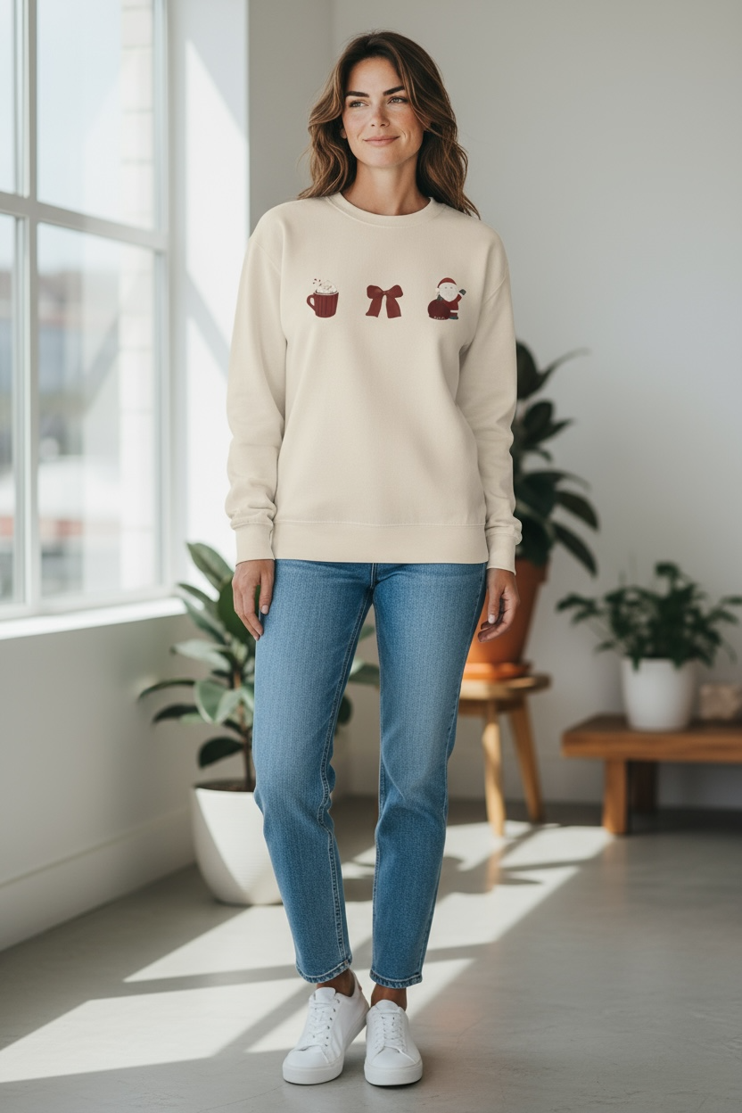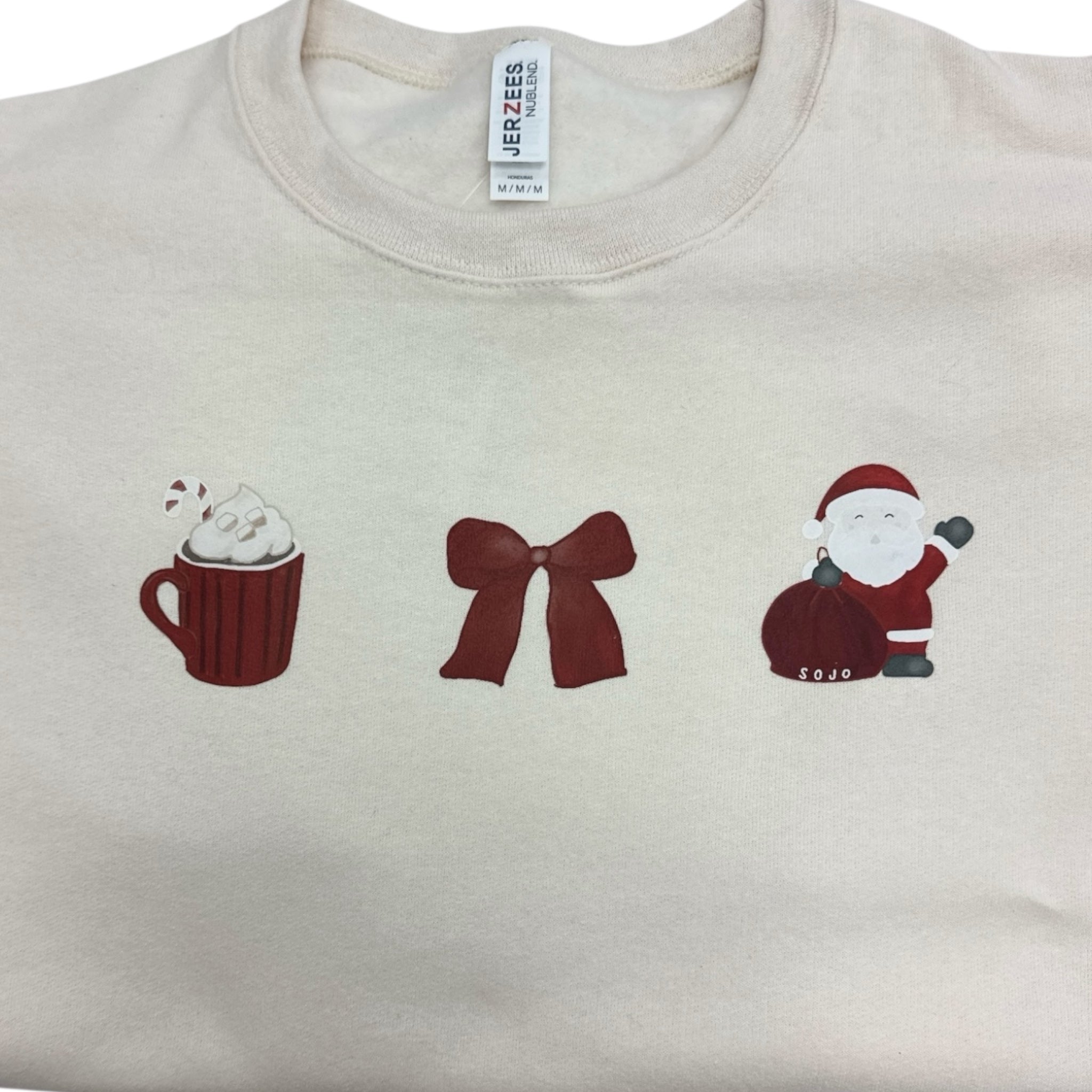 Wrap yourself in holiday magic with this exclusive SoJo Boutique crewneck! We designed this one-of-a-kind graphic from scratch—complete with steaming hot cocoa, trendy bow accents, and a cheerful Santa—to bring festive vibes wherever you go. Perfect for spreading seasonal cheer while supporting independent artists and small business. Cozy, cute, and unapologetically merry.